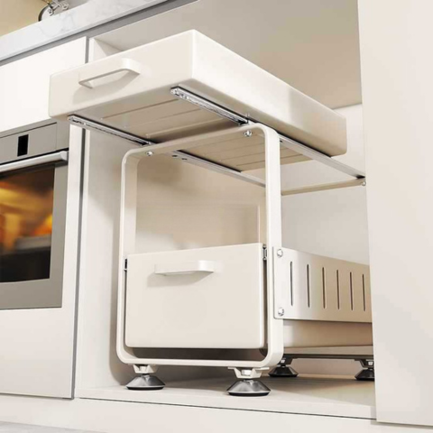 Girá la gaveta, tomá lo que necesitás y cerrá: así de simple. Todo queda a la vista y a mano, sin revolver alacenas. Ahorra espacio en la mesada y deja la cocina siempre prolija y armoniosa. Ideal para casa, quincho o motorhome.
